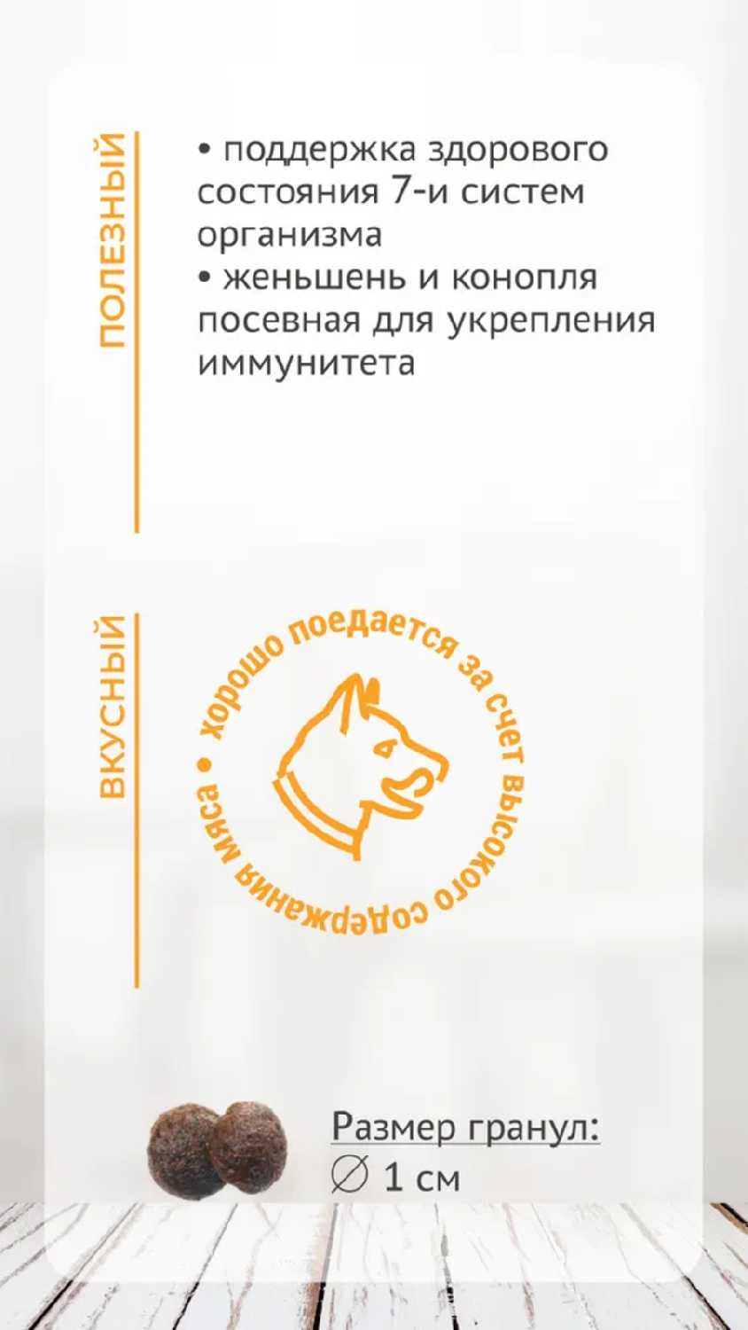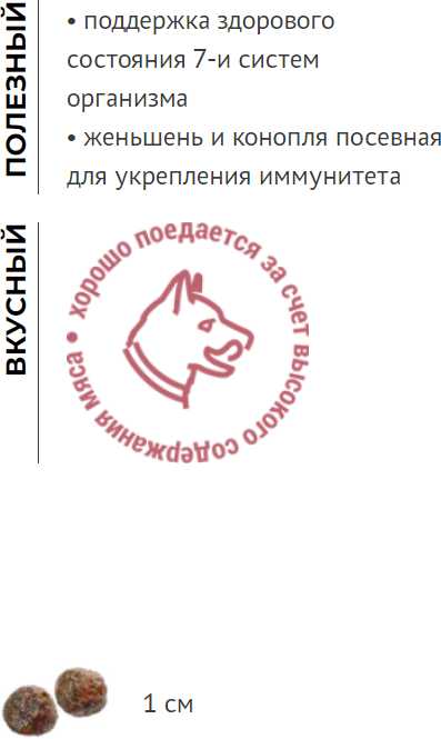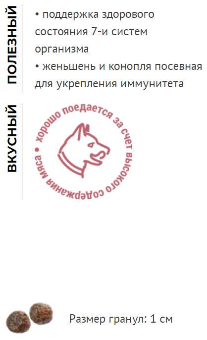 - + Нет аллергии и пищевого расстройства у собаки. Маленькие гранулы, около 1 см
