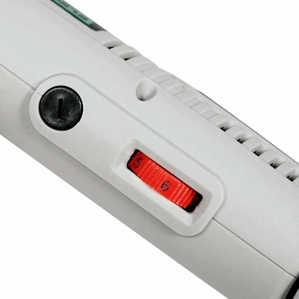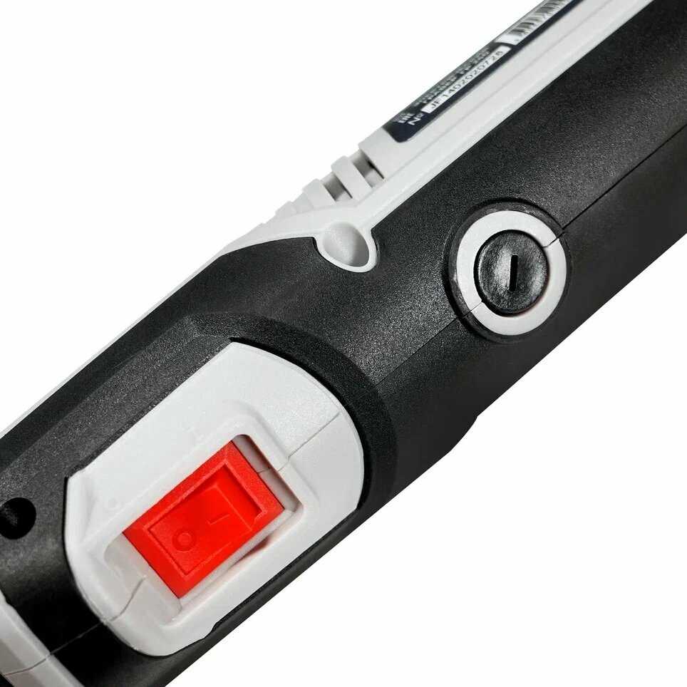 - Корпус выполнен из прочного пластика с антискользящим покрытием, что обеспечивает надежный хват даже при длительной работе.
