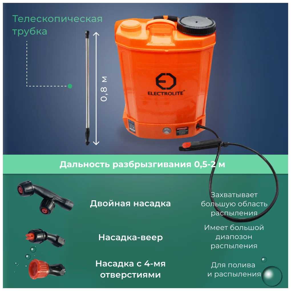 Отзывы о Аккумуляторный опрыскиватель Electrolite BS-10 10 л, 3,6 л/мин, 4 бар, 12 В, 8 Ач
