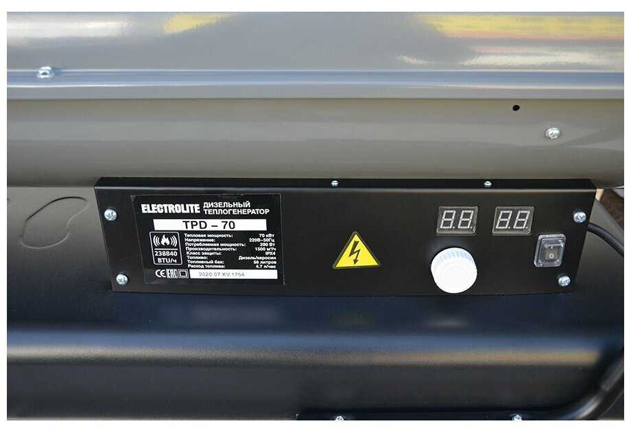 Отзывы о Дизельная тепловая пушка Electrolite TPD-70 (70 кВт; 1500 м3; 4.7 л/ч; прямой нагрев)