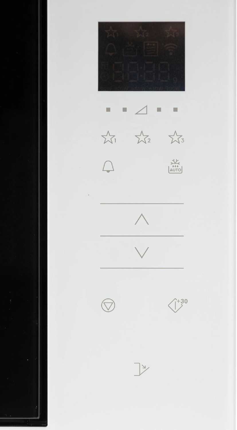| Особенности : | блокировка от детей, дисплей, кнопка +30 секунд, подсветка камеры, программирование рецептов в память |