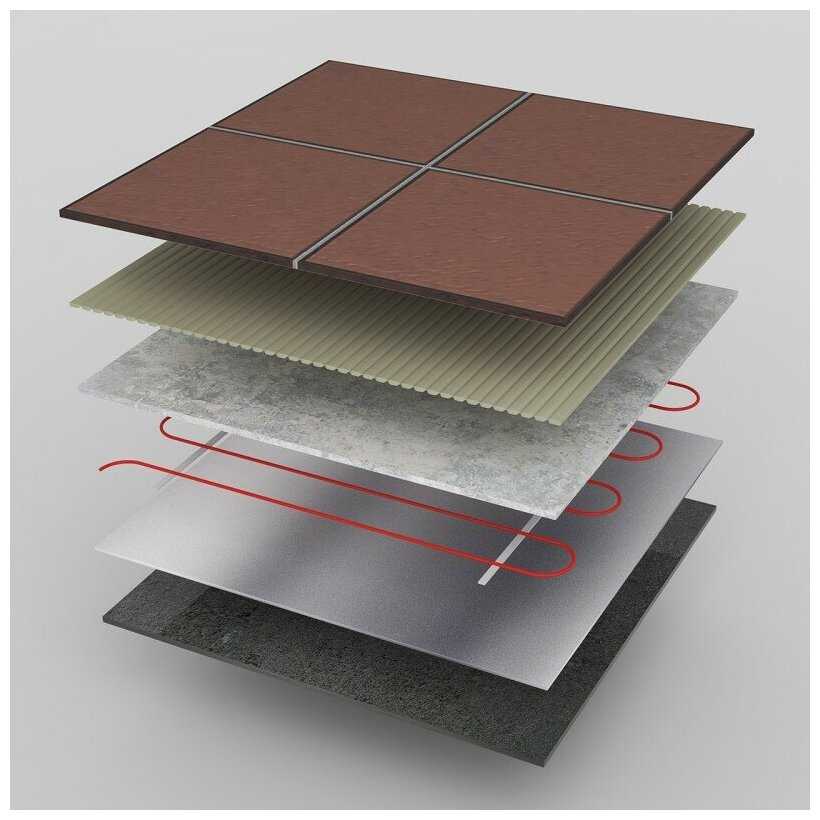 - Кабель работает под плиткой, ламинатом, линолеумом без потери эффективности, передавая тепло через слой стяжки или клея.