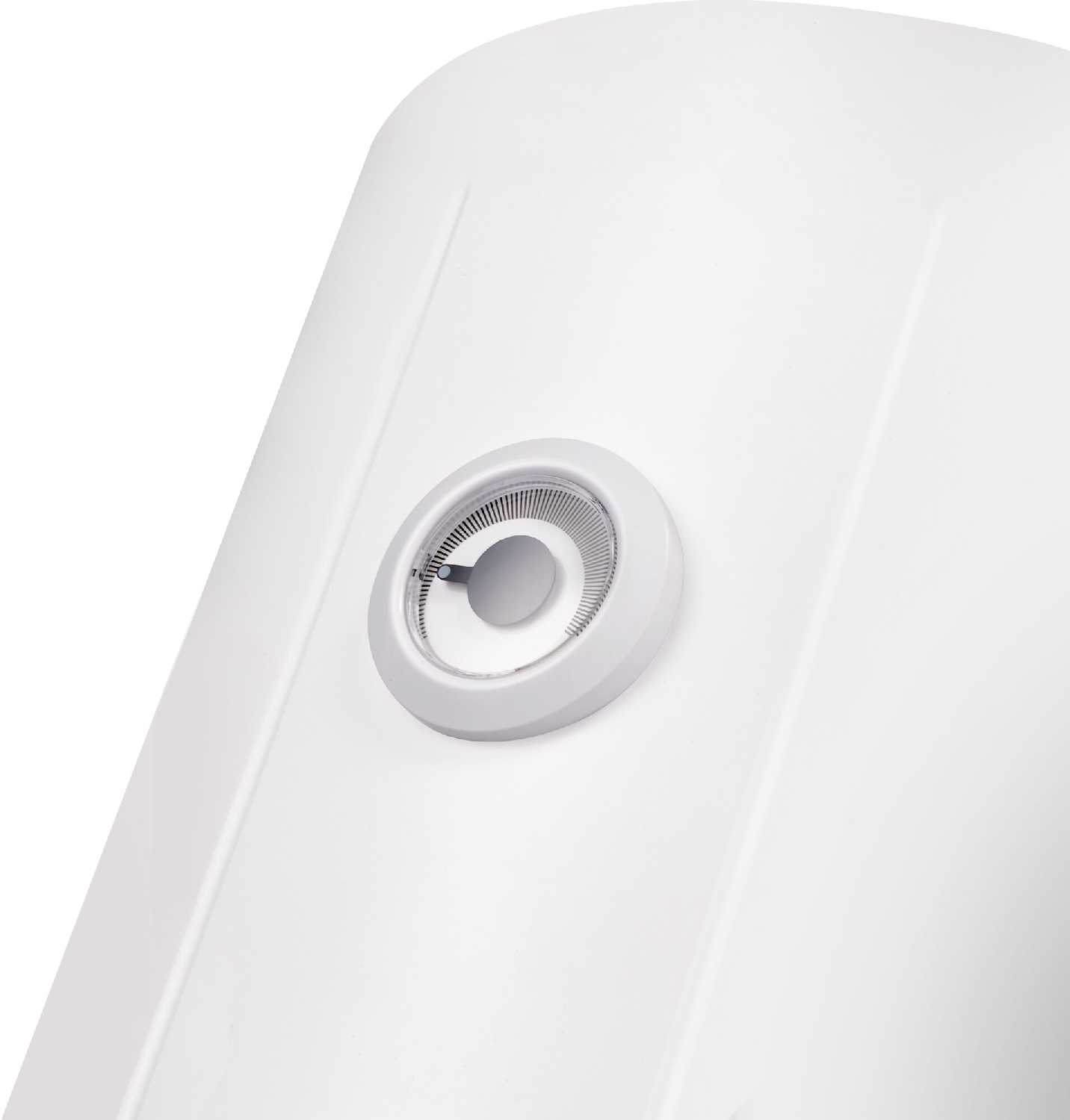 Толстая теплоизоляция позволяет сохранять воду горячей почти сутки после отключения. В эко-режиме (55°C) температура стабильно держится 12-18 часов, что подтверждается индикатором на корпусе. Это снижает частоту повторного включения ТЭНа и экономит электроэнергию. -