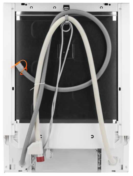 жесткий пластик заливного и сливного шлангов, что влияет на установку в мебель.