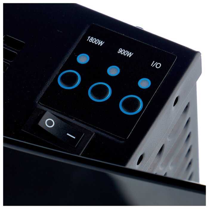 - Мощность 900 Вт и 1800 Вт обеспечивает быстрый нагрев помещений до 25 м²: "воздух нагревается через 15-20 минут", "в комнате даже жарко на полной мощности".