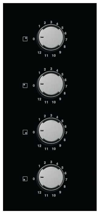 Управление конфорками реализовано с помощью механических переключателей, расположенных на рабочей поверхности, плюс имеется для каждой конфорки индикатор остаточного тепла, что не позволит обжечься или не уследить за убегающим молоком.
