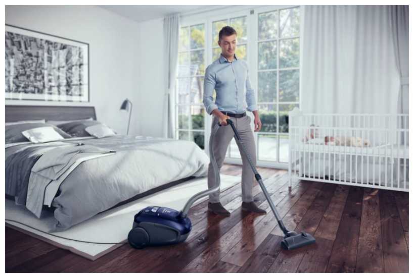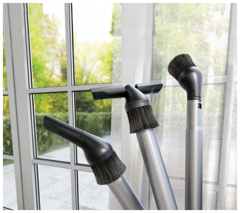 - + Благодаря мощности всасывания до 340 Вт устройство способно эффективно собирать мусор, песок, крошки и шерсть домашних животных с твердых и ковровых напольных покрытий.