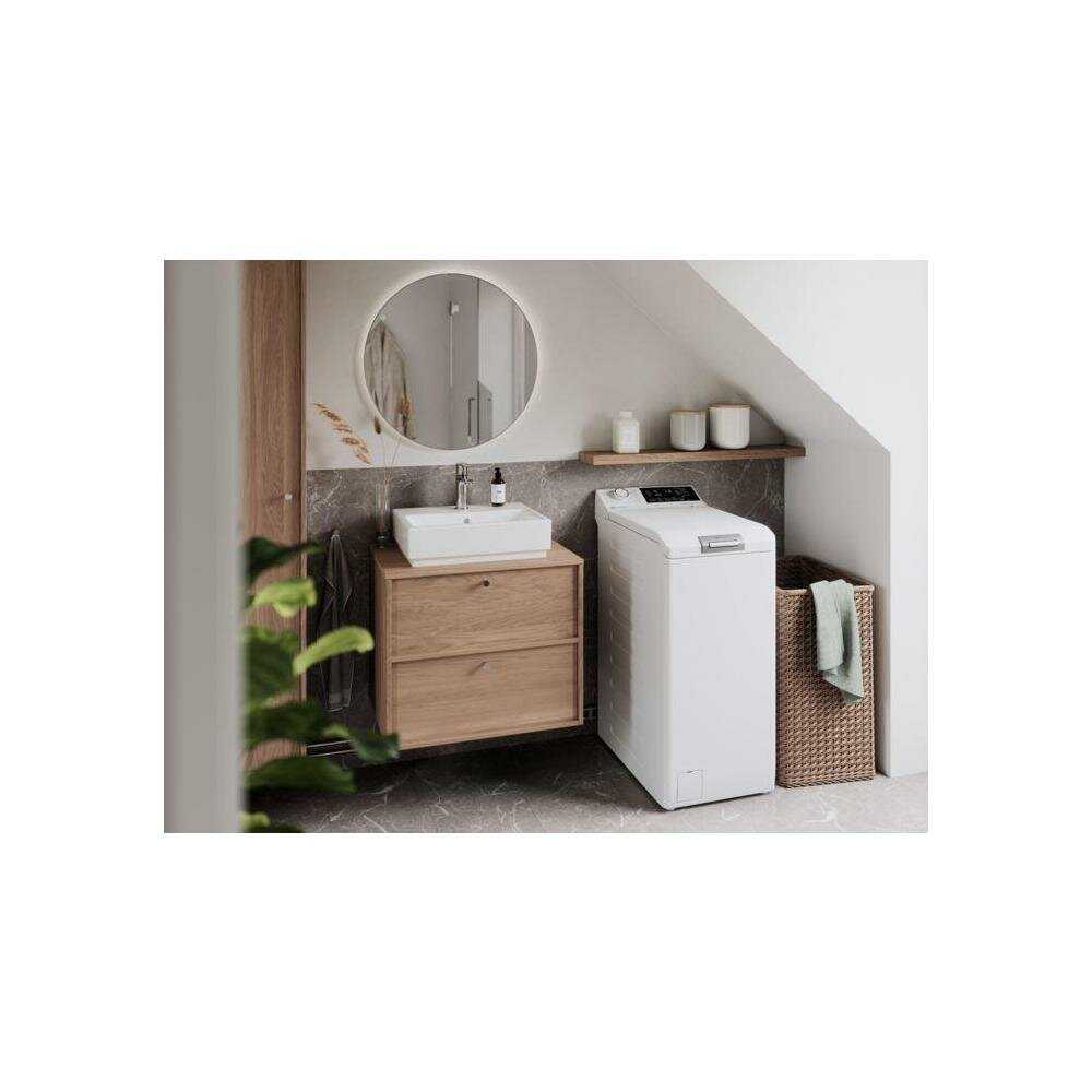 Благодаря компактным габаритам (глубина 40 см) машинка идеальна для малогабаритных ванных комнат. Вертикальная загрузка позволяет установить технику в узких проходах. Однако короткий сливной шланг требует близкого расположения к канализационному стояку.