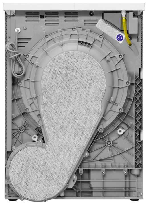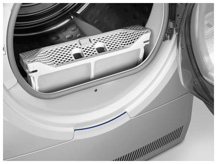 - Функция реверса барабана предотвращает скручивание крупных вещей, обеспечивая равномерную просушку.