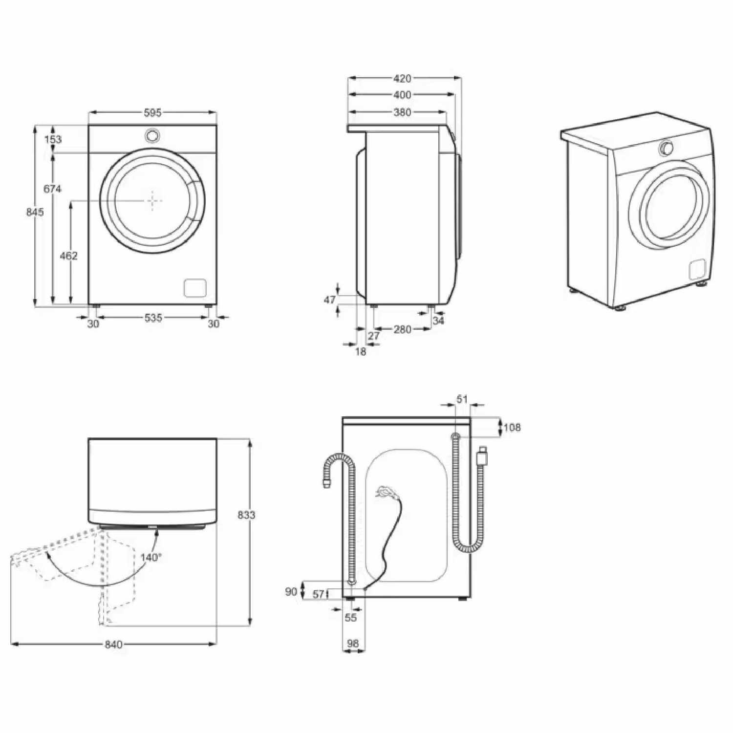 - глубина: 42 см