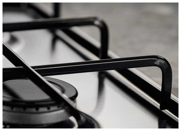 - + Дизайн, удобное расположение конфорок, газ-контроль, чугунные решетки, регулировка пламени!
