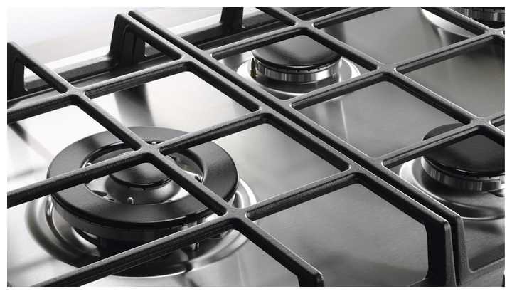 Газовую панель увидела в шоу-руме, сразу подкупило, что панель сама черная, отлично сочетается с остальной техникой. Решетка из двух частей, что очень удобно, если поверхность загрязнилась, можно поднять только одну часть и помыть. Так же решетка прочная, чугунная, можно ставить тяжелые кастрюли, не накренятся.