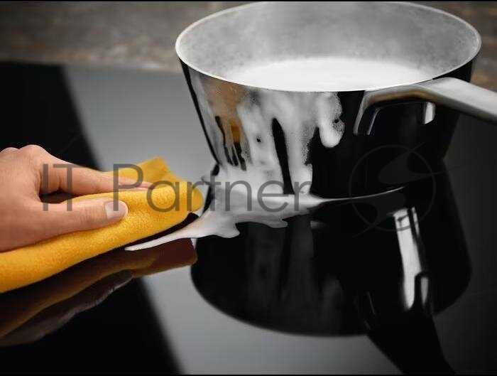 - Гладкая стеклокерамика не впитывает загрязнения – большинство пятен удаляется влажной тканью без абразивов.