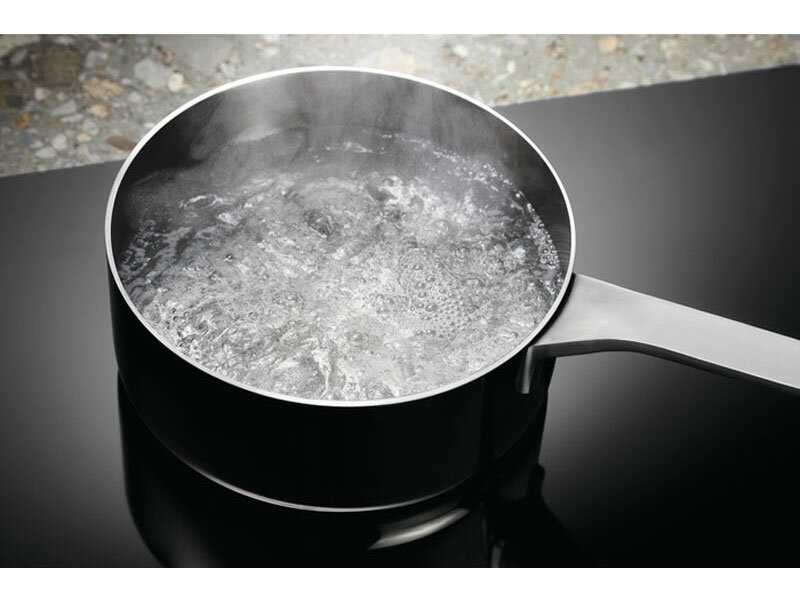 Очень быстро разогревает посуду, в режиме Turboboost просто невероятно быстро. Затраты времени на разогрев жидкости превращается просто в формальность. Автозакипание работает четко, но доводит до очень сильного закипания, вручную никто бы не стал до такого доводить. После закипания конфорка не выключается, а переходит на более низкий уровень мощности. Благодаря 14 градациям мощности, очень удобно ловить оптимальную во время готовки.