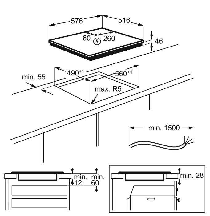 2) Вырез в столешнице можно делать меньше, чем указано в инструкции, чтобы плита села плотнее. (иначе получается с запасом).