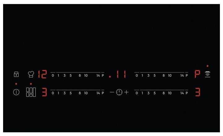 - Индивидуальные сенсорные слайдеры для каждой из 4 конфорок обеспечивают точную регулировку 14 уровней мощности.