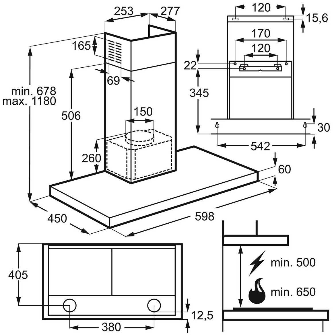 - ширина для установки: 60 см