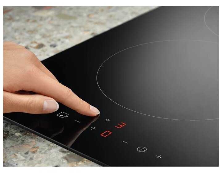 - Отзывчивый сенсор, быстро реагирует на сухие касания, не требует выбора конфорки заранее.