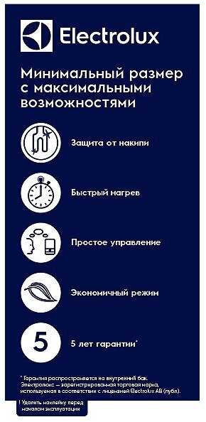 - Быстрый нагрев воды благодаря мощности 2-2.5 кВт: