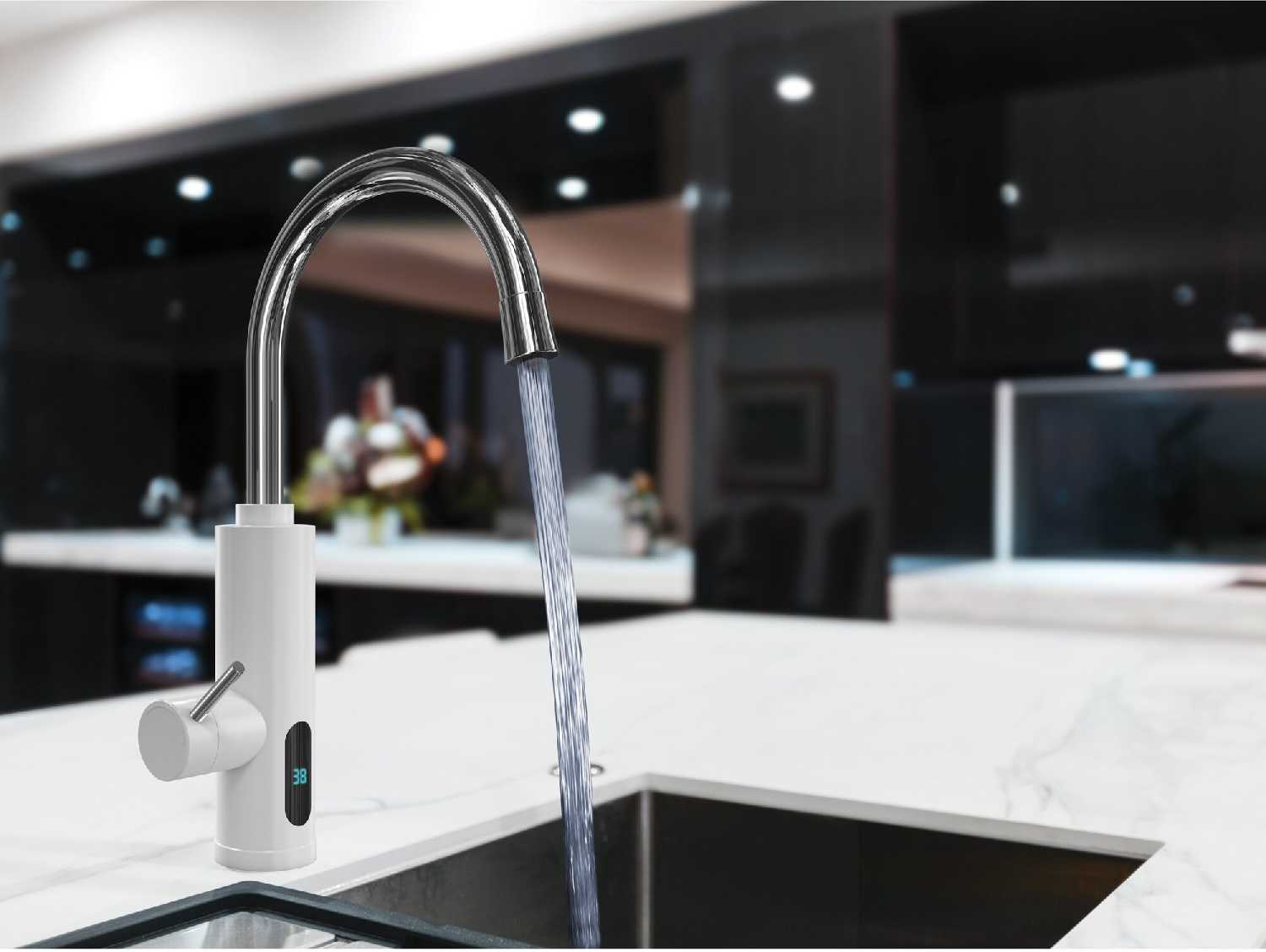 - + Красивый кран и показывает температуру нагрева.