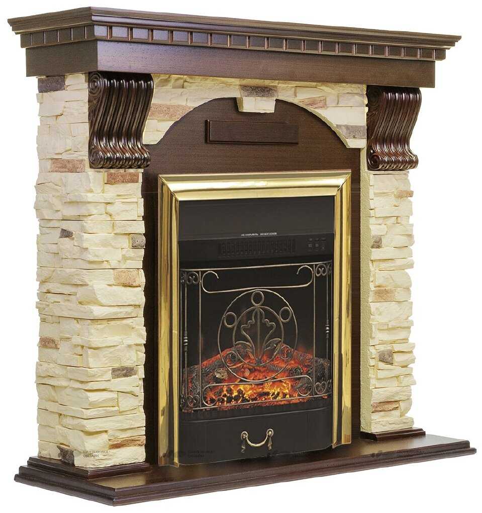 Royal Flame Dublin темный дуб/арочный сланец + Majestic FX M Brass
