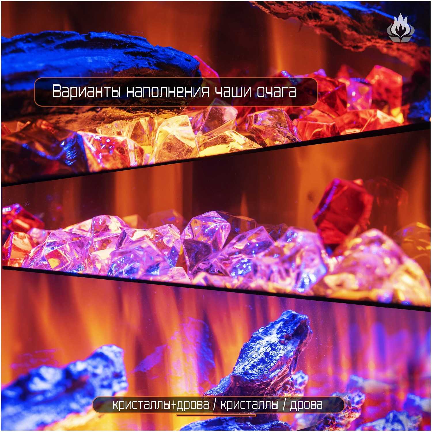 везде. Кристаллы и дрова идут в отдельных пакетах и можно их разложить при монтаже камина по своему вкусу. Кристаллов 85% - прозрачных, есть еще красные и черные понемногу штук, если кому то захочется и таких положить. - - Нет.