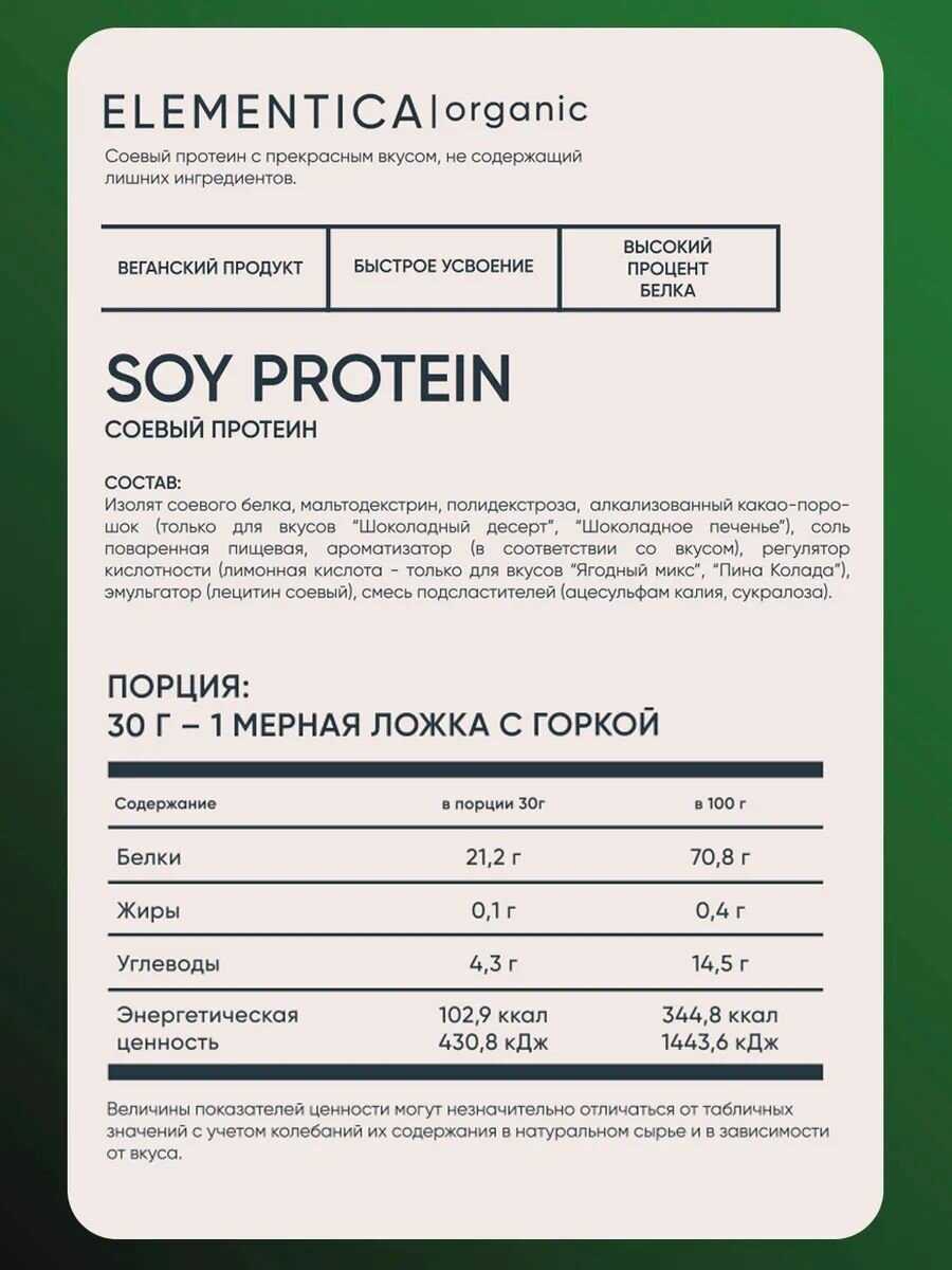 Лучшие цены сегодня на Elementica Organic Изолят соевого белка