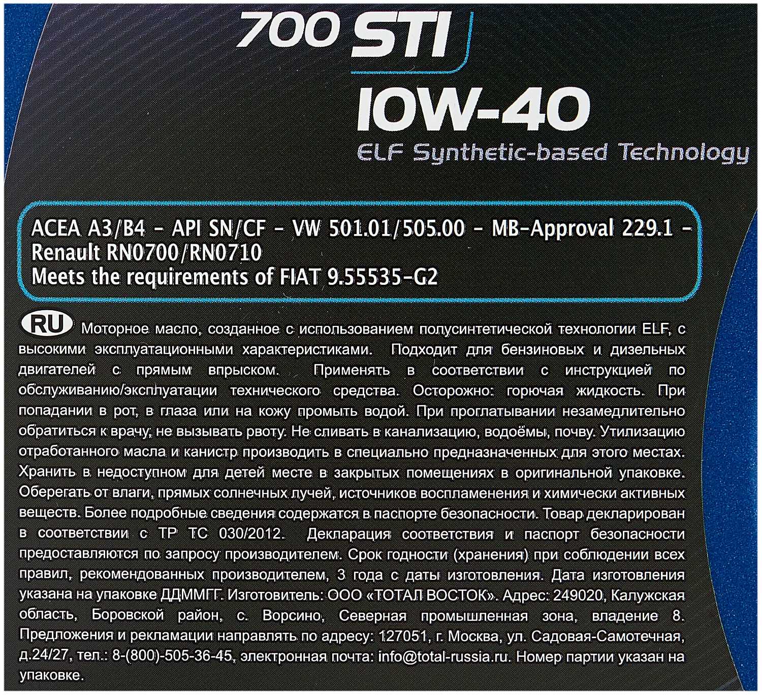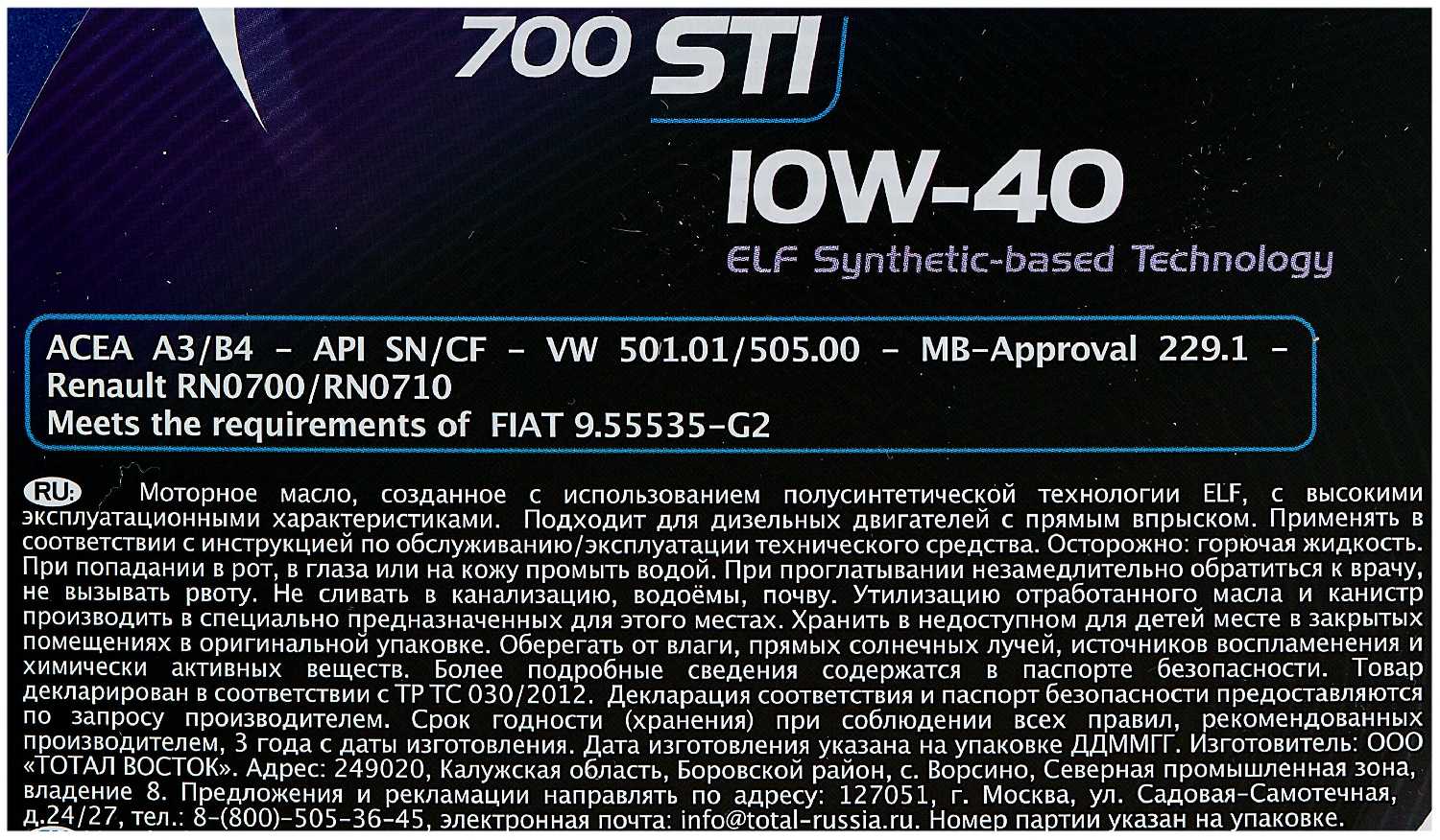 Отзывы о Синтетическое моторное масло ELF Evolution 700 STI 10W-40