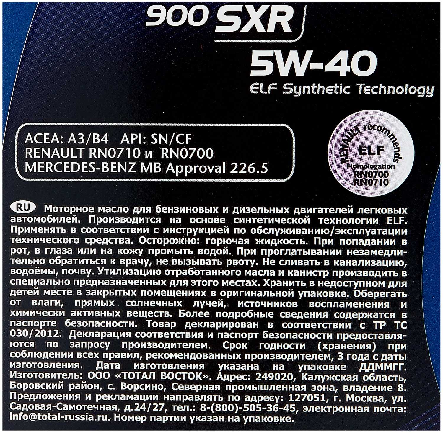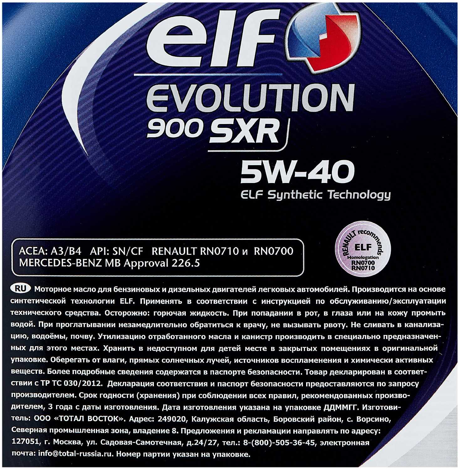 Обзор ELF Evolution 900 SXR 5W-40 - мнение пользователей*: