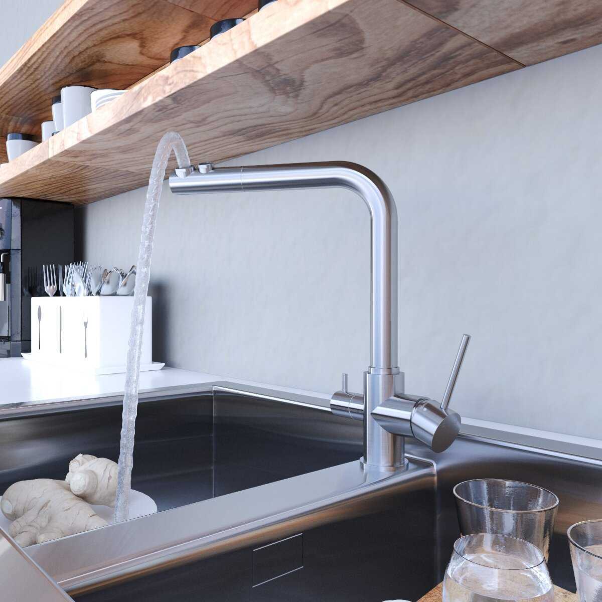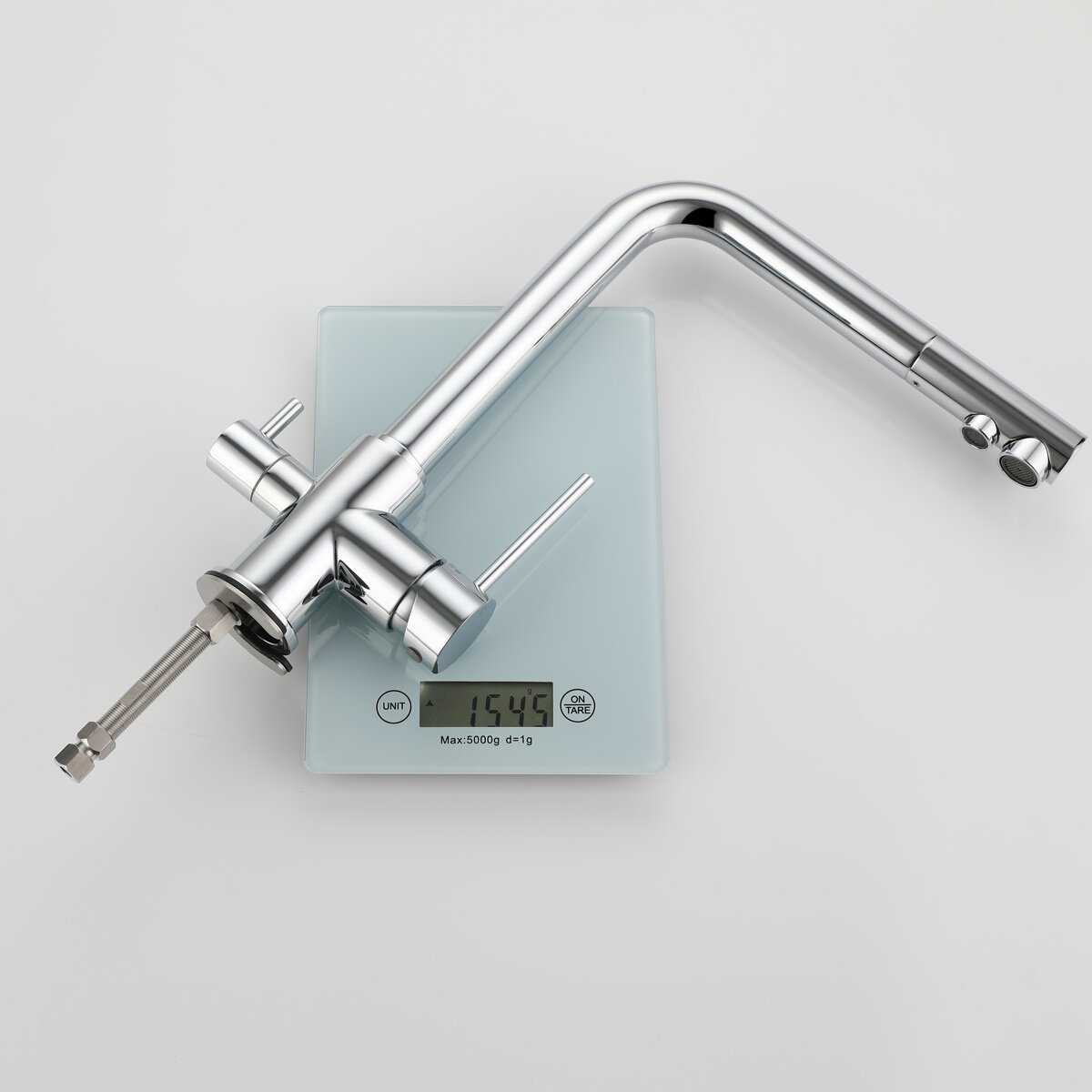 - - При установке на мойку пришлось ставить проставку из дсп, имитируя столешницу. Очень короткие подводки. Нет аэрации струи воды.