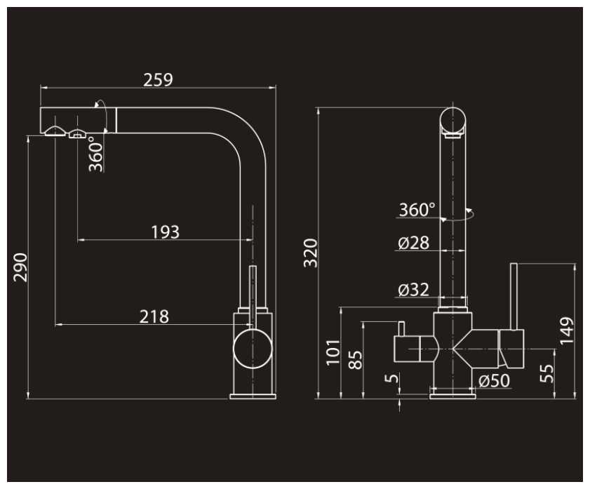 - излив: для фильтрованной воды