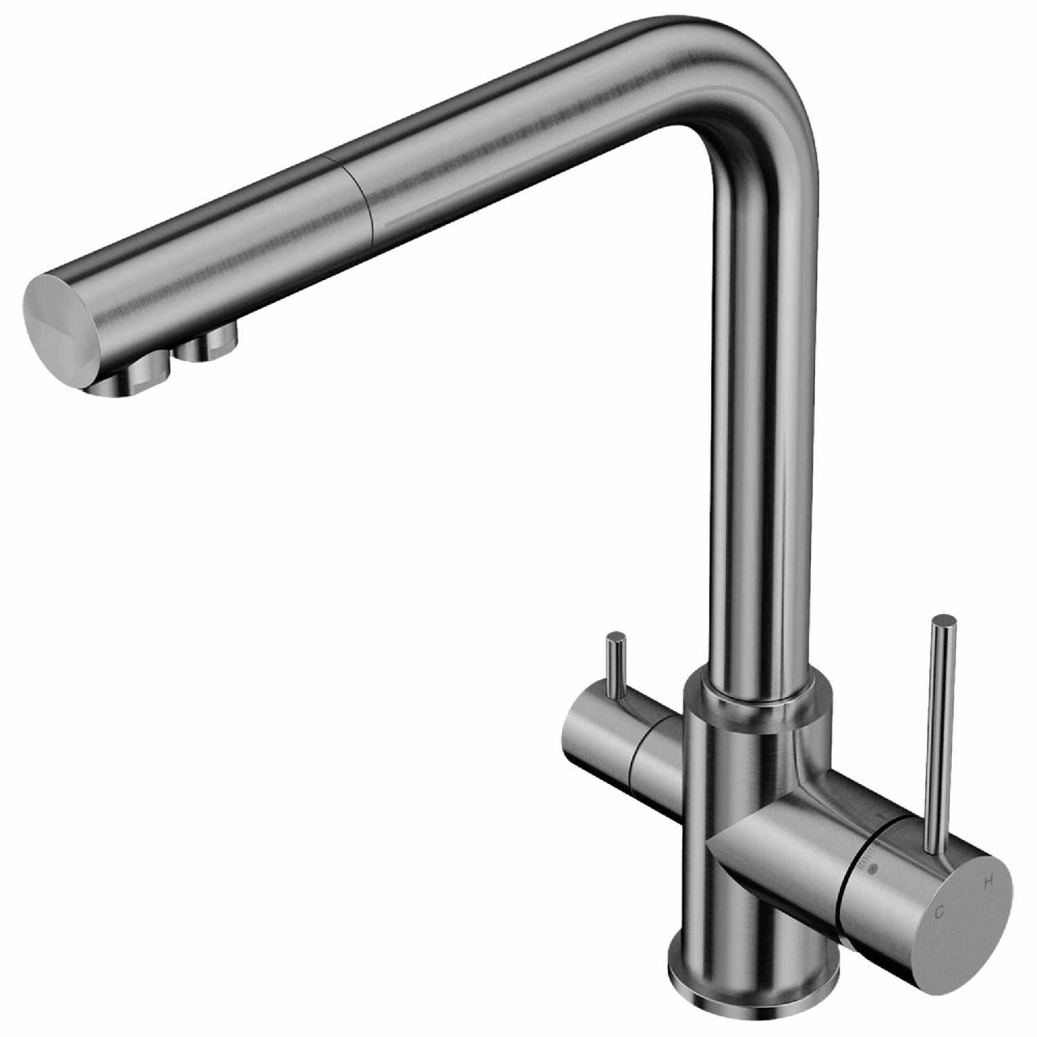 - + Плавный, качество метала, второй рычаг на отдельно подведенную фильтрованную воду.