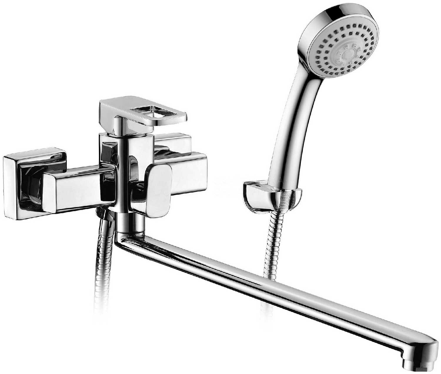 Смотрится элегантно, удобно переключать воду между краном и душем поворотом рычага, а не поднятием. В комплекте идёт держатель лейки душа, это однозначный плюс