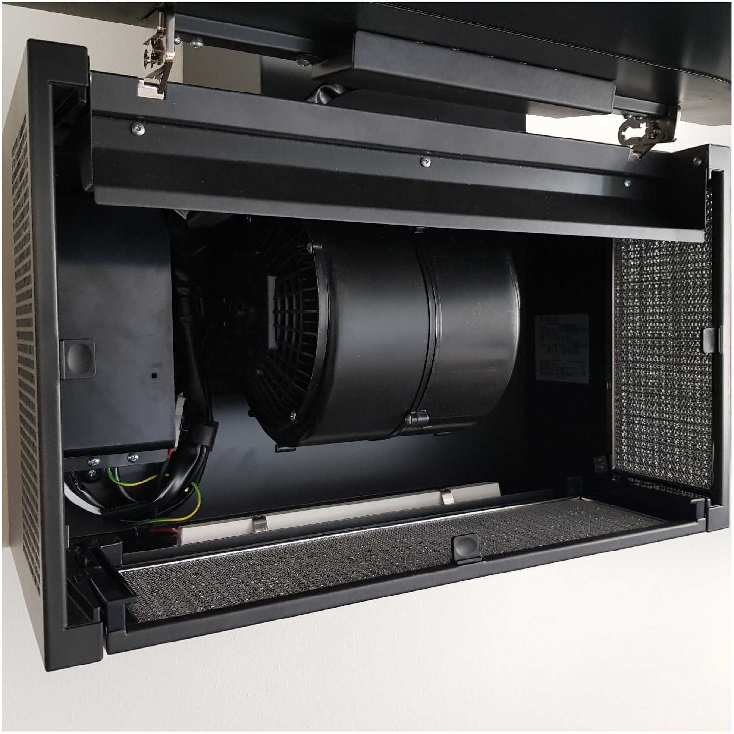 - Фильтры (жироулавливающий и угольный) изготовлены из долговечных материалов, моются в посудомойке.