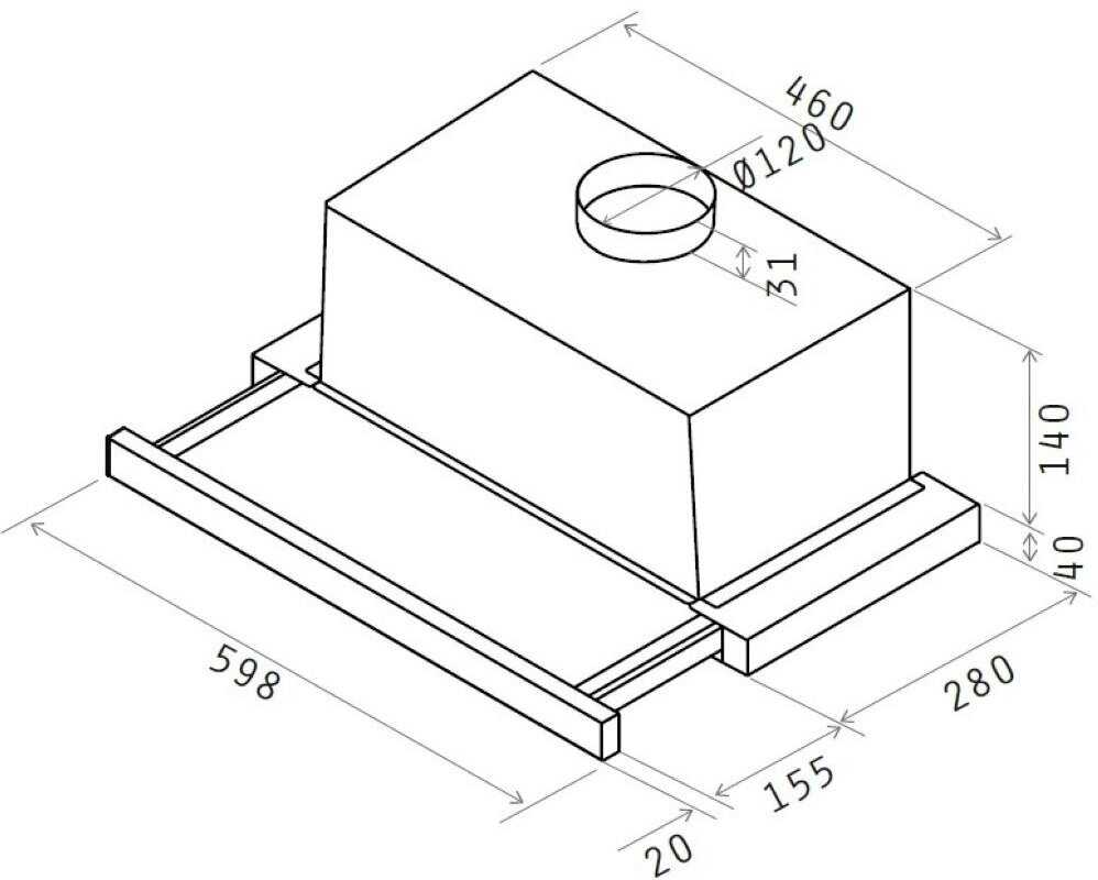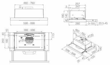 Обратный клапан есть в комплекте. - - При открытии/закрытии выдвижной панели включается/выключается только мотор вытяжки. Свет таким образом не выключается!