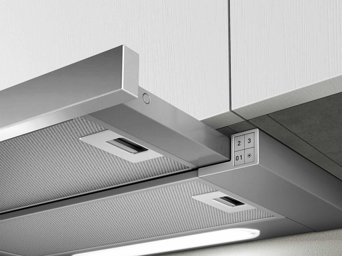 Купили с женой всраиваемую вытяжкуElica Elite 14. Она по цвету по размерам как раз подходила к нашей кухне. Монтируется быстро и пракически не заметна, не выделяется из общего интреьера. Работает шумновато, но зато отлично забирает всесь дым и жир. Прола испытание жаркой мяса и семечек, практически в кухне запаха не слышно. Управляетя кнопками, моется легко.