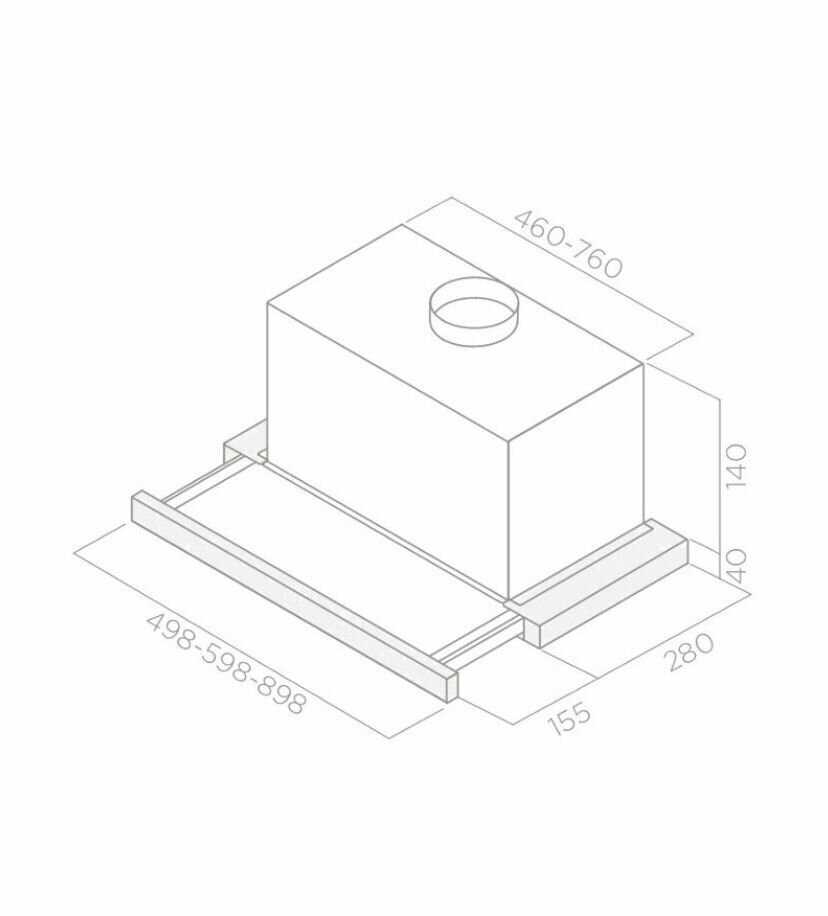 - + Встраиваемая компактная вытяжка предназначена для очистки воздуха от нежелательных примесей и продуктов горения. При активации режима отведения все испарения устраняются через вентиляционную шахту.