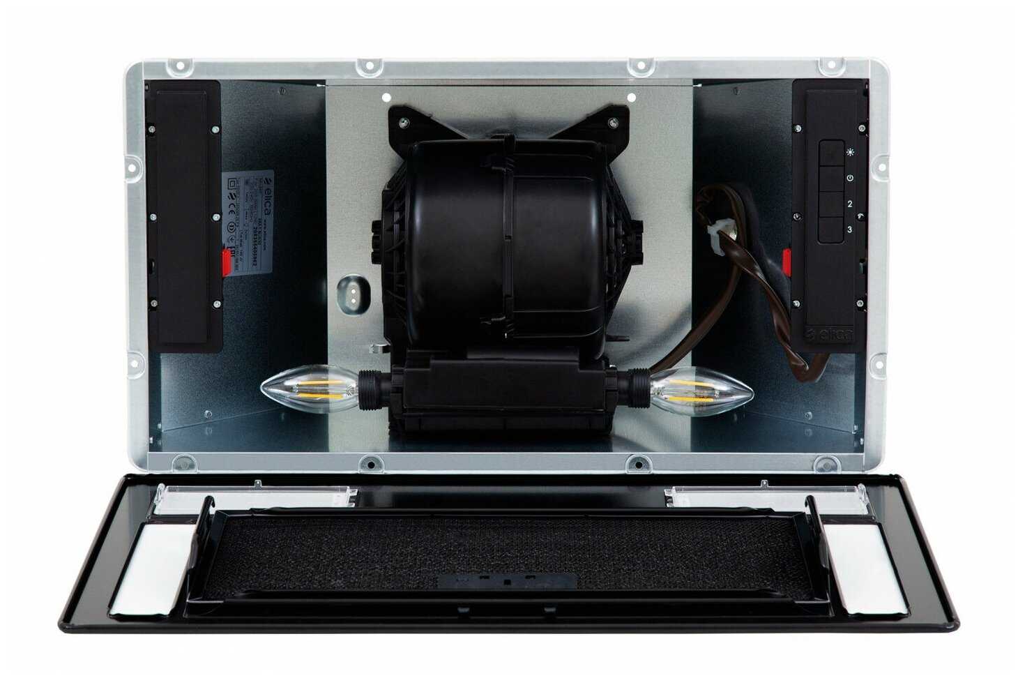 Приобрели вытяжку для встраивания в шкафчик над варочной поверхностью. У данной вытяжки в отличии от многих к стене смещены лампы, а проем вытяжной части находится ближе к дверце шкафа, что улучшает забор воздуха когда готовишь на ближних к себе конфорках плиты. Еще к плюсам отнесу механическую панель управления, а также возможность ее установки с нужной стороны ( она съемная). тянет воздух отлично! Покупал сразу к вытяжке угольные фильтры, их при желании можно аккуратно разобрать и перезаправить новыми гранулами (можно найти в продаже на вес).