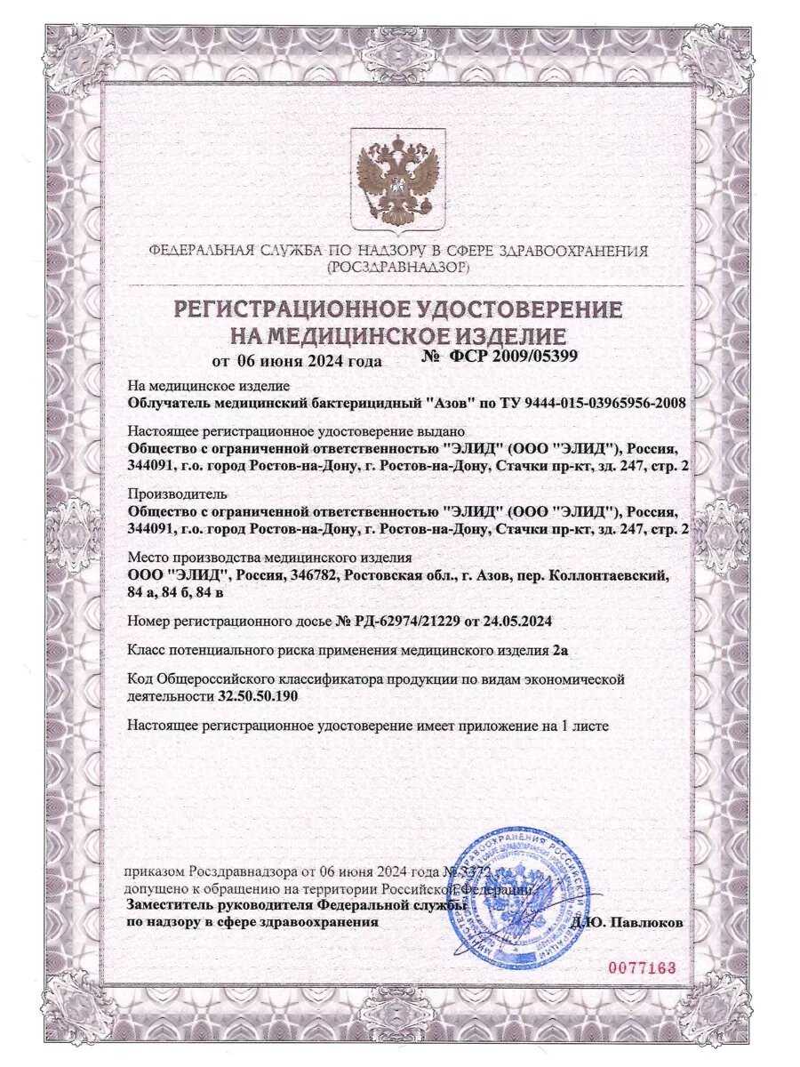 3 отзывов пользователей o ELID Облучатель передвижной "Азов" (ОБПе-450)