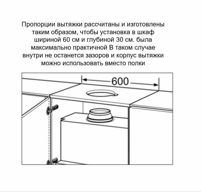 Так как мы хотели - зашить вытяжку полностью в шкафу, у нас не получилось и по-моему производитель выпуская данную вытяжку не подразумевал это. Эта информация будет полезна.