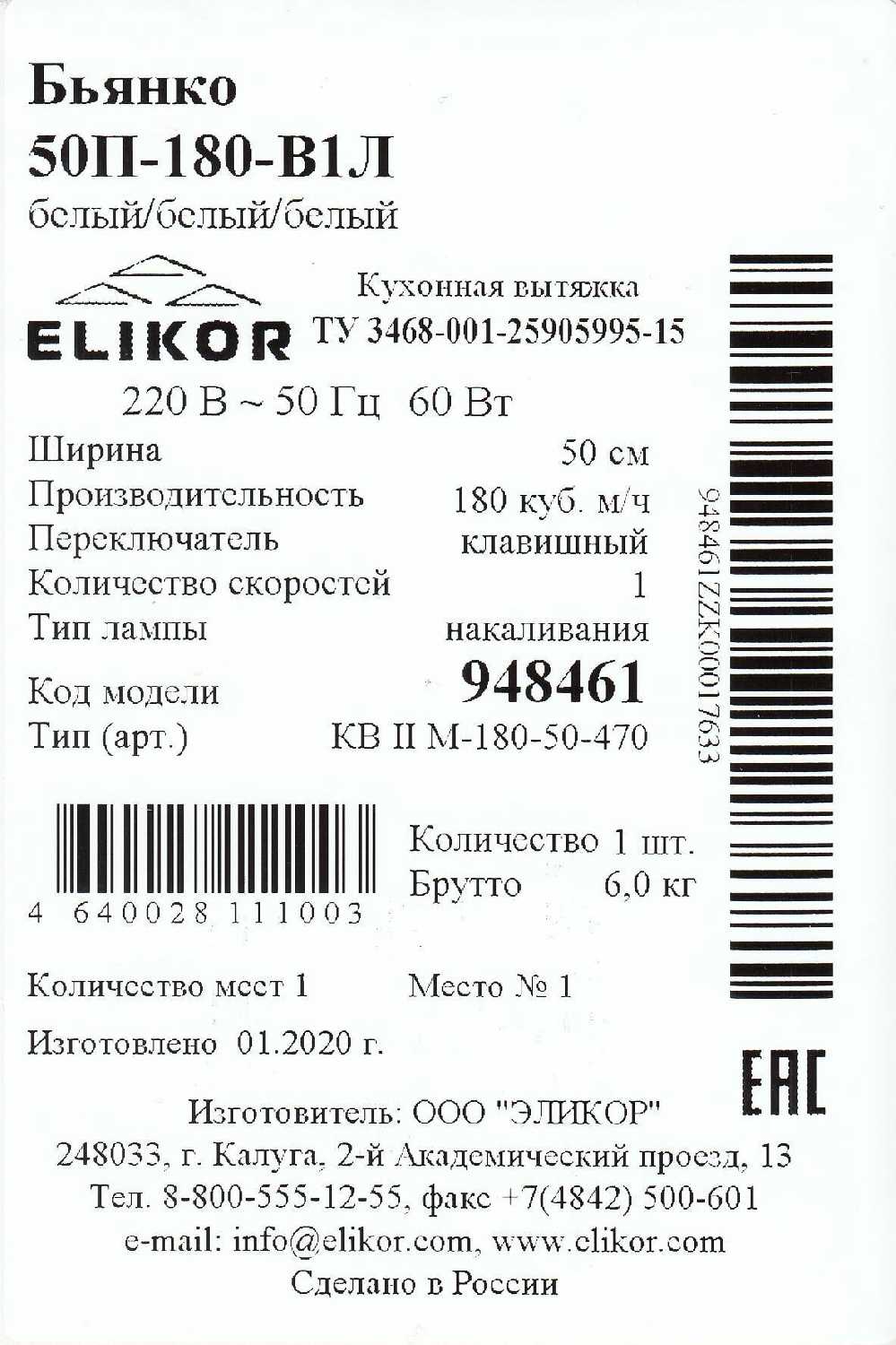 Отзывы о Вытяжка настенная ELIKOR Бьянко 50 см