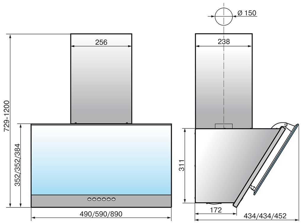 - + Устройство предназначено для настенного крепления над варочной поверхностью, ширина которой не превышает 49 см. Производительность устройства составляет 700 м3/ч.
