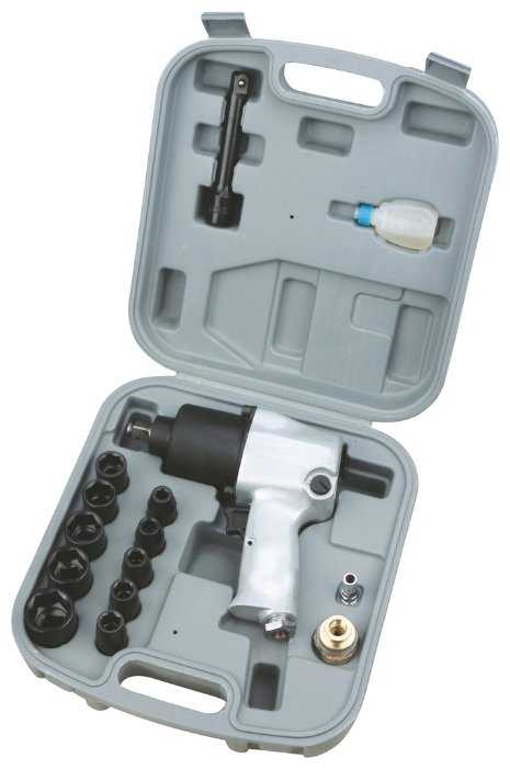 | Комплектация : | головки 1/2" (9, 10, 11, 13, 14, 17, 19, 22, 24, 27 мм), удлинитель 1/2" (125 мм), шарнир 1/2", ключ шестигранный (5 мм), лубрикатор, тюбик с маслом, переходник 1/4" - рапид |