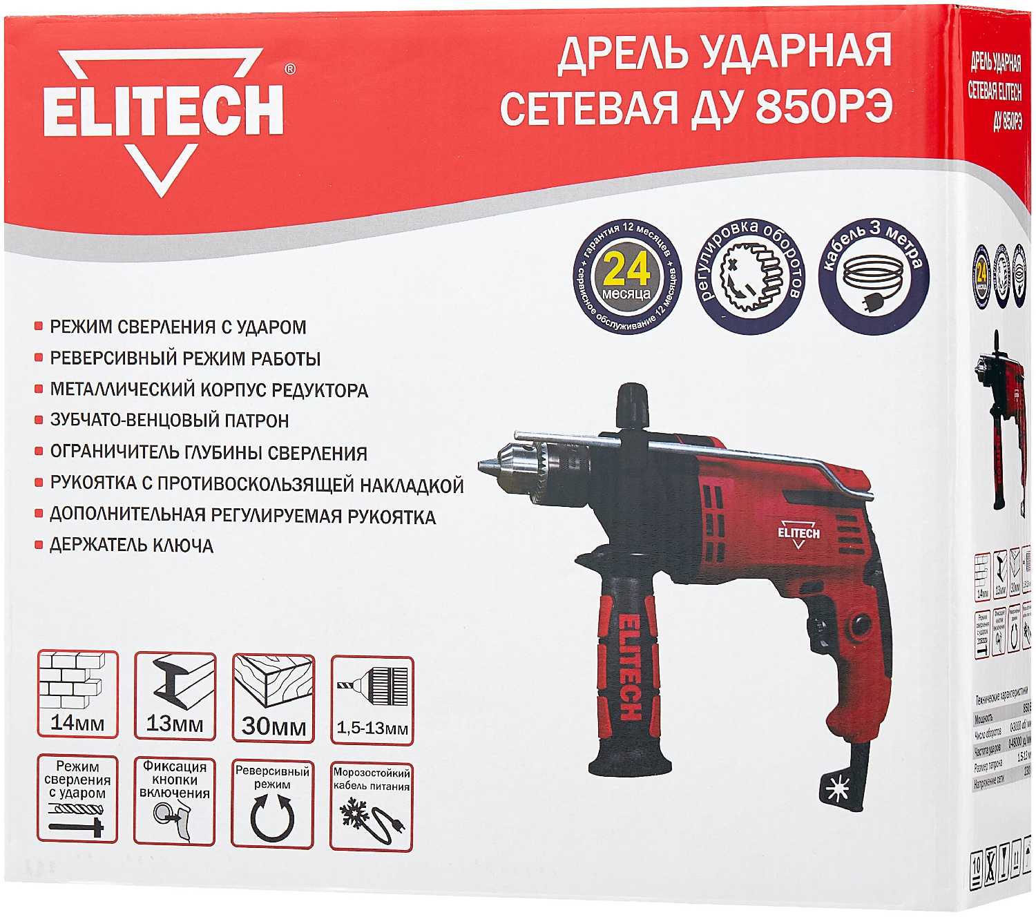 7 отзывов пользователей o ELITECH Дрель ударная ДУ 850РЭ