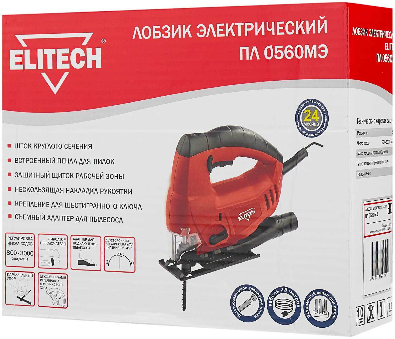 Характеристи ELITECH Электролобзик ПЛ 0560МЭ (500 Вт)