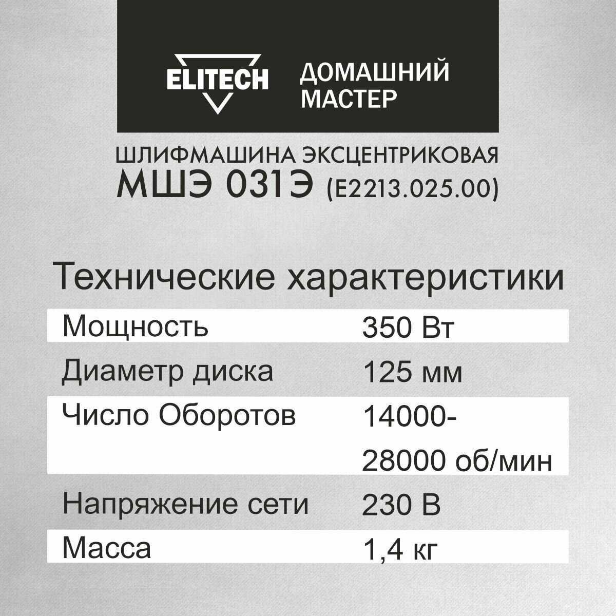 啸邪褉邪泻褌械褉懈褋褌懈 ELITECH 袦楔协 031协