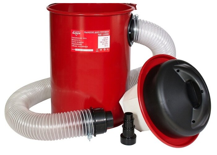 | Дополнительная информация : | Многоступенчатый адаптер под разные диаметры патрубков, широкий всасывающий шланг для работы с крупной стружкой, многоразовый фильтр тонкой очистки. |