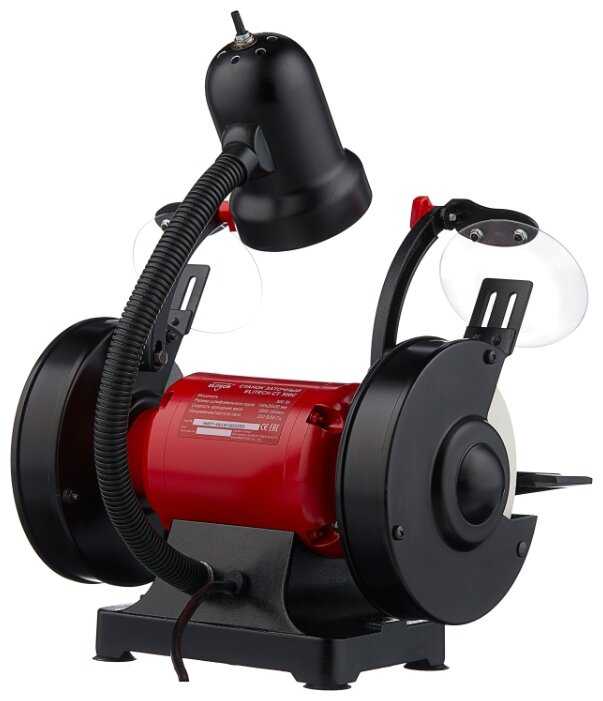 - + Неплохое качество изготовления самого станка и навесных приспособлений, изготовленных из металла методом литья. Это придает им более выгодный вид по сравнению со штампованными. Практически полное отсутствие биения дисков и как следствие отсутствие вибраций. Хорошая геометрия дисков. Удобная лампа подсветки. Установка дисков на металлических втулках. Наличие защитного ключа.