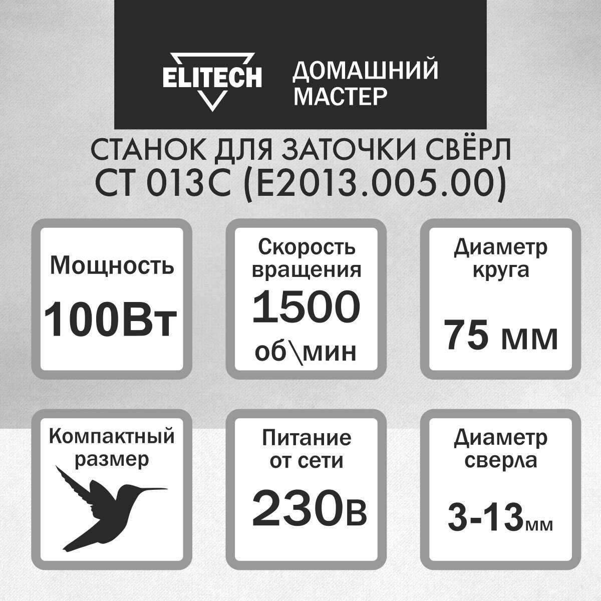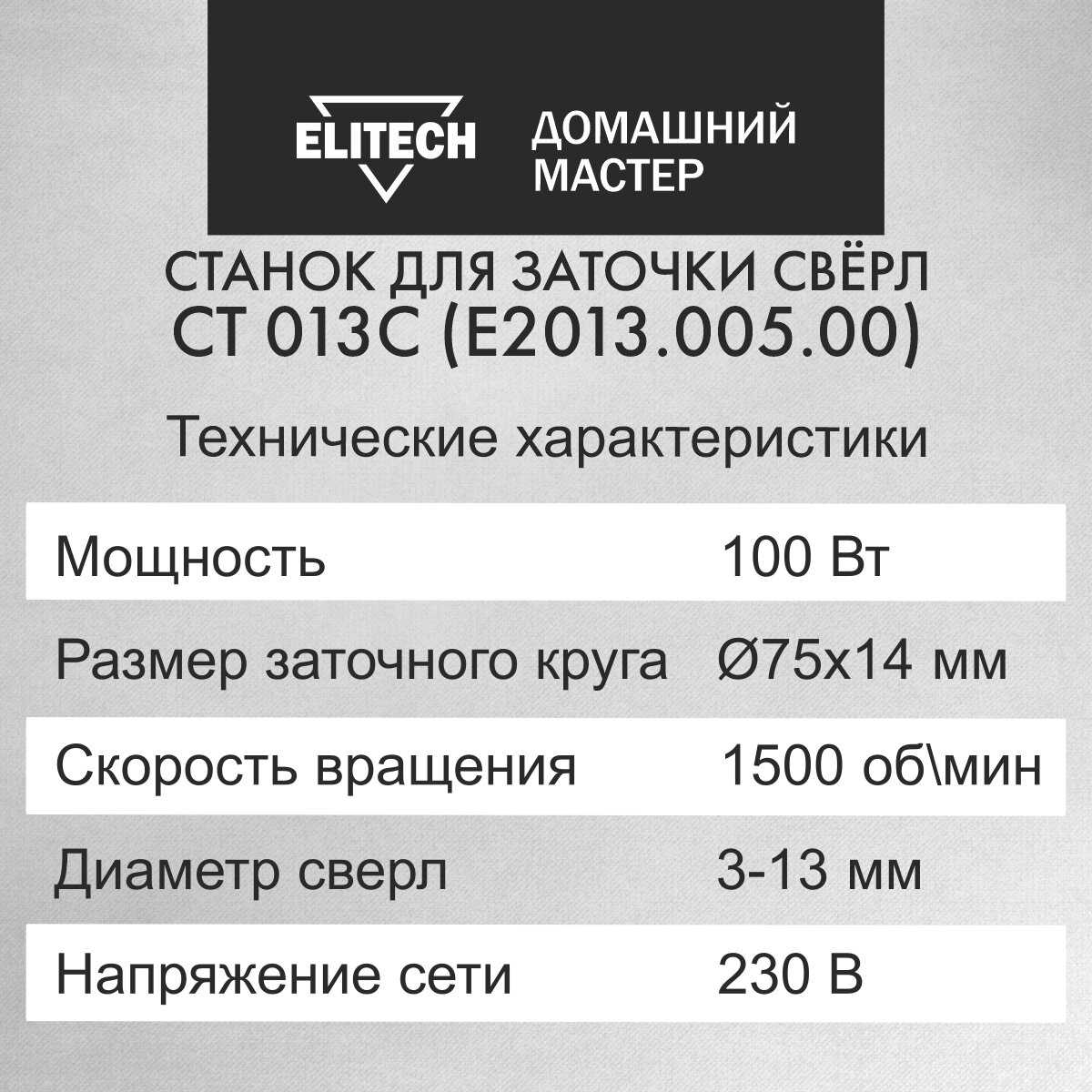Характеристи ELITECH Станок для заточки режущего инструмента (СТ 013С)