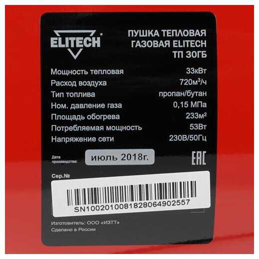 Отзывы о Газовая тепловая пушка ELITECH ТП 30ГБ